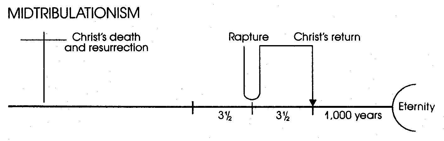 15. The midtribulational view also agrees that the rapture will be premillennial but disagrees in holding that it will occur at the midpoint of the great tribulation, meaning that the church will not experience the last half of this period when suffering will be the most severe.